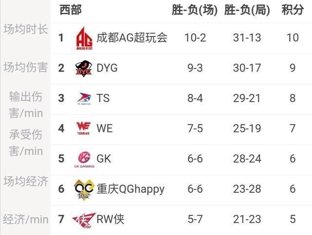 西部赛区比东部赛区混乱了不少,就连成都AG超玩会都尚未确定其胜者组的资格。按照目前的战况来看,西部胜者组大概率会是成都AG超玩会和DYG。但是败者组谁都不敢确定,毕竟目前排名第8的YTG也仅落后第5名的GK一场胜利,谁知道接下来3场比赛的结果会如何,或许还能见证第8名逆袭的奇迹。所以不到最后一刻都无法确定究竟谁会被季后赛的大门挡住,这也就是电竞比赛的魅力所在。