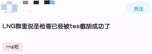 不过,这两天圣枪哥加入RNG好像出了点变故,有网友在贴吧内爆料,说LNG群里传出TES截胡圣枪哥,RNG-圣枪哥将变成TES-圣枪哥。