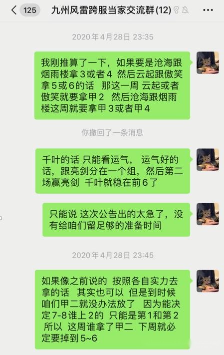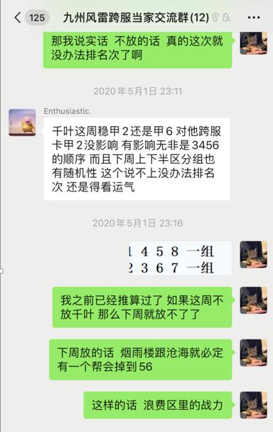 想要顺利执行“田忌赛马”的计谋,需要服务器中所有有资格参赛的帮会都全力配合,才能将帮会排序时达到“完美”。原本九州风雷8个甲组帮会的大佬在开会时同意了这一策略,但是让人没想到的是,到了决定帮会正式序列的排序赛,有一个原本排在中位的帮会“云起朝歌”却临时生变,拒绝打假赛输给原本应该被“送”上甲一位置的对手。因为这一变数,导致九州风雷服务器的帮会排序大乱,完全偏离了“田忌赛马”的编排。