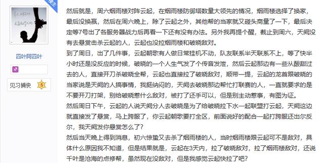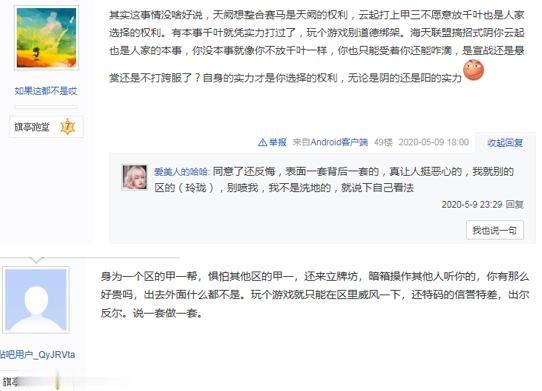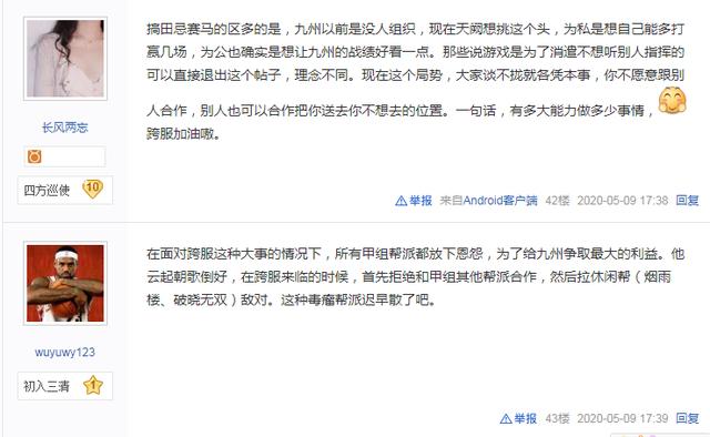 不过,不少玩家觉得,“打假赛”本身就是灰色地带,一个帮会为了自己的荣誉不愿意给对手放水,不应该被全服务器群起而攻;还有玩家嘲讽,同样是甲一帮,惧怕其他区甲一帮就算了,还要暗箱操作,凭什么让人家听你的?