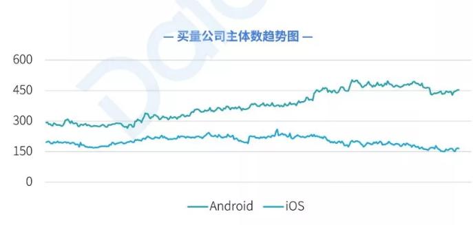 而参与买量的公司主体数,2018年最高峰时期473家,到了2019年上升至最高峰时期542家。