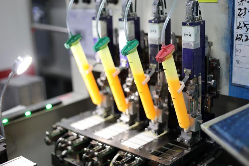 在LED白光器件的一个生产车间,南都记者看到,机器在高速运转。生产线上的产品,经固晶、焊线、封装、测试、编带、包装6步完成,全部实现自动化生产。
