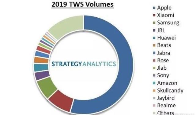 最近几个季度,华为的TWS无线耳机出货量已经位列全球TOP10。其中最大的受益者当属歌尓,仅仅在智能声学整机部分,歌尓2019年就实现了148.23亿元的收入,同比增长117.57%;其营收比重更从2018 年的28.68%上升至2019年的42.17%,成为歌尔股份增长的重要驱动力之一。