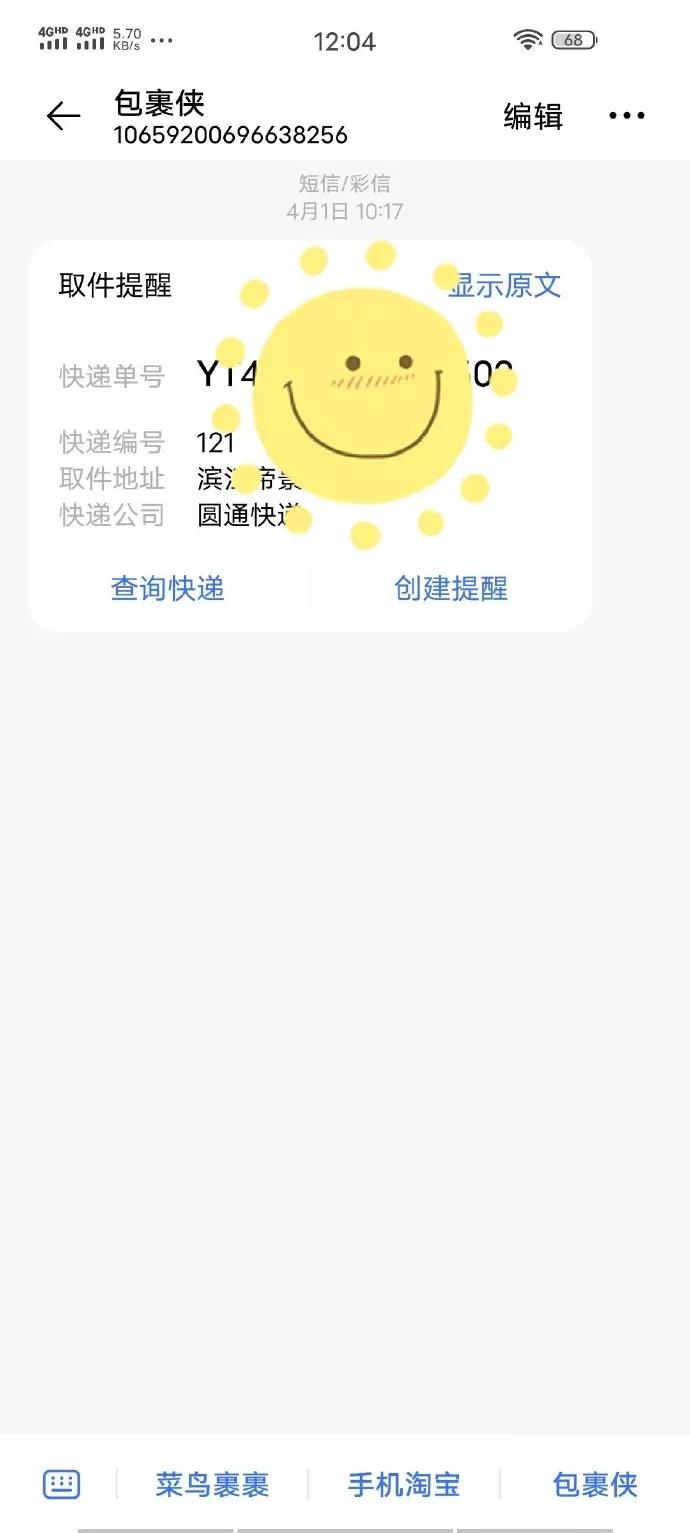 从这个提示可以看出,这个“5G消息”APP,就是一个短信的“外挂管理平台”,其实,已经有多个手机厂商推出了这种短信外挂服务,这可以大大方便用户。例如,在疫情期间,圆通通知我去某地址取快递。
