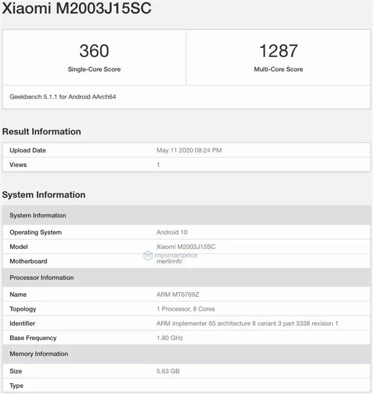 IT之家5月12日消息 据外媒mysmartprice消息,Redmi 10X已现身Geekbench跑分网站。
