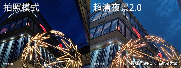 超清夜景2.0模式实际上是复合多帧降噪与HDR技术结合的成果,将降噪、手持防抖、高光压制、动态范围提升集于一身,进而做到“高光不过曝,暗部不欠曝”,还原尽可能多的图像细节。在拍摄夜景人像时,OPPO A52则可对人物、前景、背景分区处理,保证人脸亮度,并对鬼影和炫光进行压制。