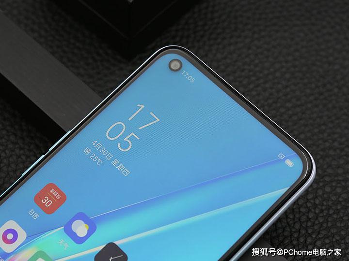 我们再看看OPPO A52的外观设计。外观方面,OPPO A52正面搭载了一块6.5英寸、1080P分辨率超清灵点全面屏,其屏幕像素密度为405ppi。在低温多晶硅技术加持下,屏幕显示效果非常清晰,颜色鲜艳,细节生动,功耗也有所降低。屏幕左上角为前置自拍摄像头。