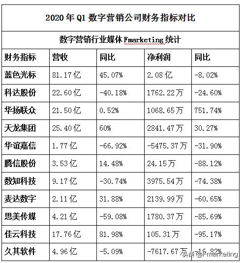 单从其财报来看,华扬联众的表现还算不错。但是从整个数字营销行业来看,也算不上太突出。Fmarketing统计的11家公司来看,在营收上,华扬联众低于蓝色光标、天龙集团、科达股份为例第四,净利润中为例第六。