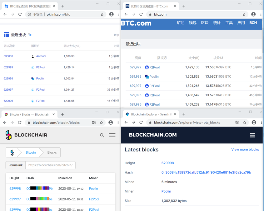 据欧科云链(HK.01499)全资子公司OKLink Fintech数据显示,北京时间5月12日凌晨3点23分,比特币在区块高度630,000完成第三次减半,区块奖励从12.5 BTC减半至6.25 BTC。OKLink区块链浏览器凭借着对数据变更的敏锐察觉和后续计算的准确性,此次全网最准最快检测到最新出块,报块时间较其他区块链浏览器提前一分钟,实时性领先于其他同类产品。