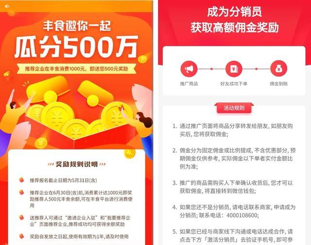 但顺丰的野心并不小。在小程序上,丰食面向商家实施“免费上线”的优惠活动,面向用户则推出“推荐企业返好礼”的500万元补贴活动,拉拢“人心”的意味明显。