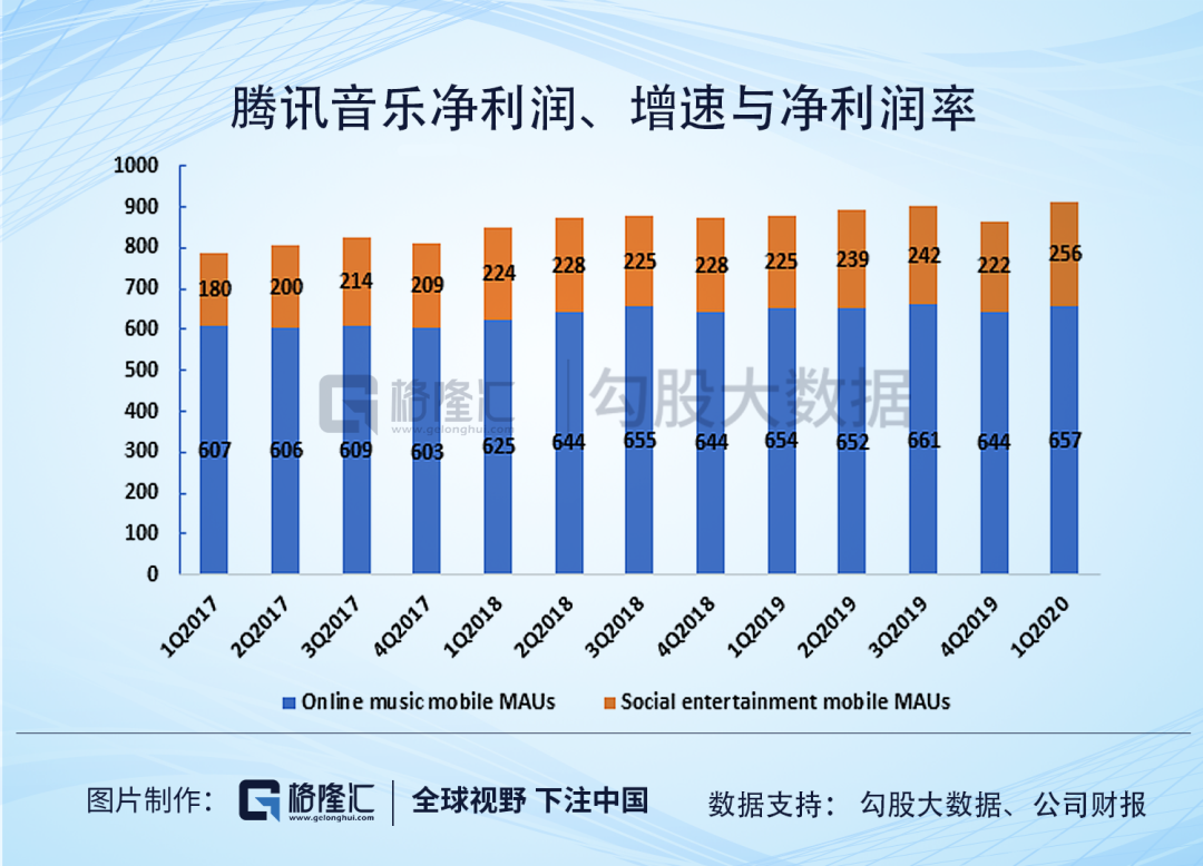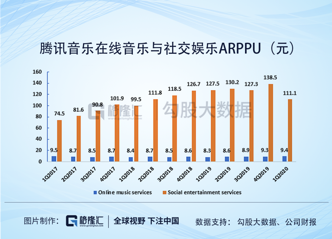 就2020Q1财报来看,疫情在线音乐和社交娱乐的ARPPU影响则截然不同。该季度在线音乐ARPPU为9.4元,高于上年同期的8.3元。而社交娱乐ARPPU则较同期显著下降,这在之前提到过,基本也在预期之中。