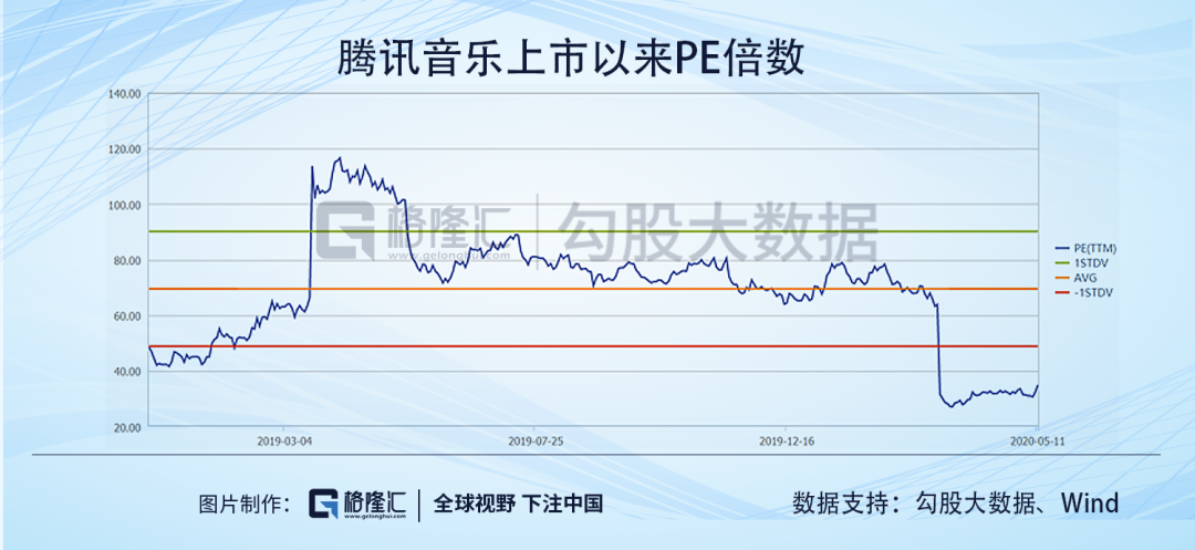 我们预计,随着疫情影响逐渐平息,负面影响将在Q2出现好转,帮助其毛利率回升。当前腾讯音乐PE(TTM)=35.0倍,已跌至上市以来新低。接下来需等待疫情后恢复叠加新业务贡献收入带动社交娱乐ARPPU回升的信号。