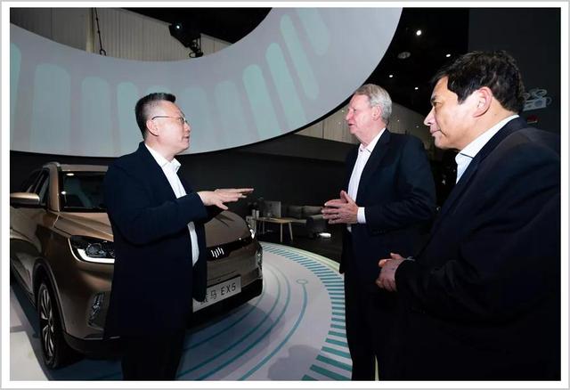 ▲前通用集团全球主席及CEO里克·瓦格纳参观上海车展威马展台