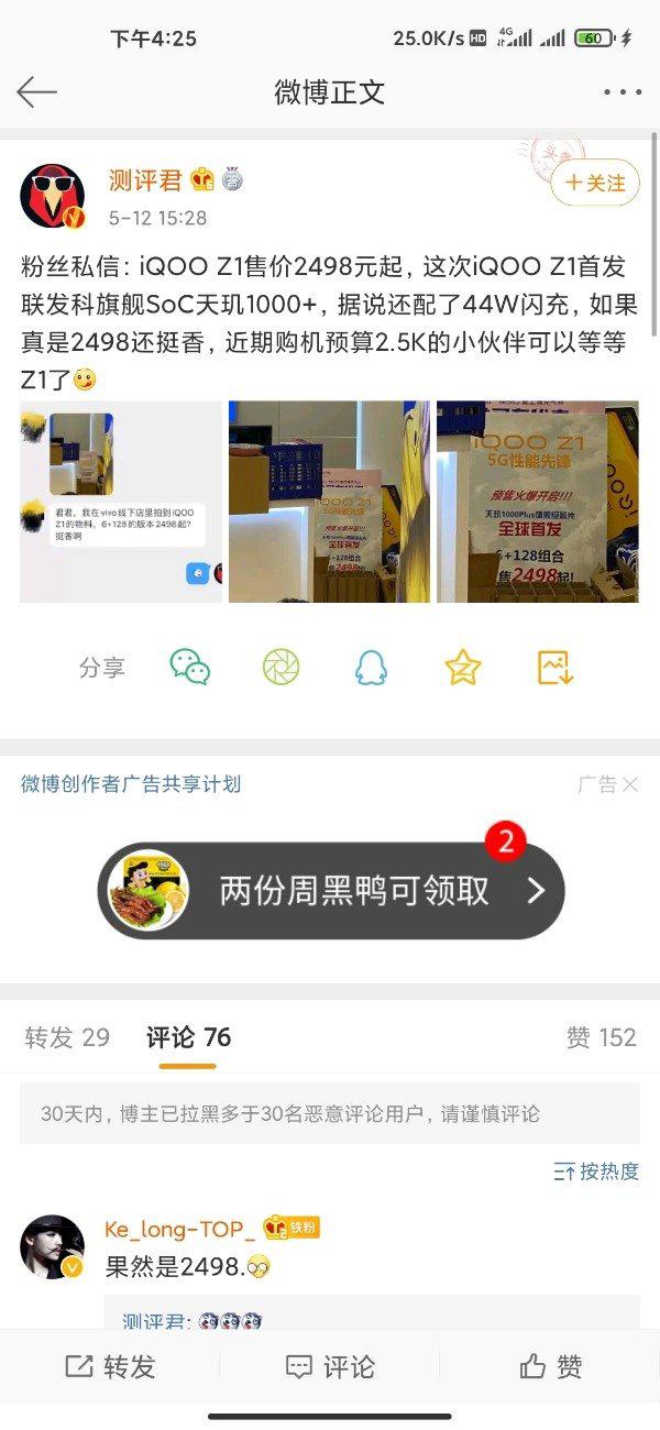 现在据微博博主@测评君 爆料,iQOO Z1 6GB+128GB售价2498元起,这款手机首发搭载联发科天玑1000+处理器,还会配置44W闪充。