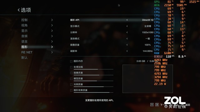 接下来是两款游戏测试。游戏选择了《古墓丽影:暗影》和《生化危机3重制版》(试玩Demo)。第一款游戏使用内置Benchmark,《生化危机3重制版》(试玩Demo)则录制帧数曲线、记录游戏过程中CPU和GPU的硬件占用情况。