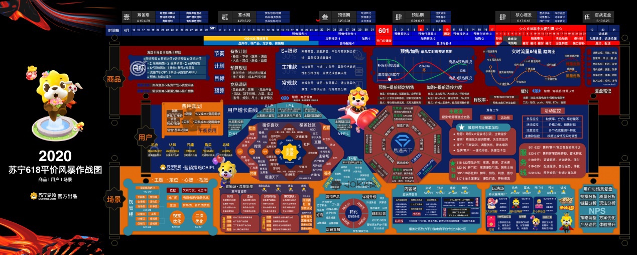 5月12日,“苏宁618作战图”在网络上曝光。从这份“作战图”可以看出,苏宁的618分为4月15日至29日的筹备期、4月29日至5月22日的蓄水期、5月23日至31日的预售期、6月1日至17日的预热期、6月17日至18日的核心爆发期等阶段。据苏宁内部人士透露,苏宁618预售报名将从5月15日启动,5月21日开始首批预售。