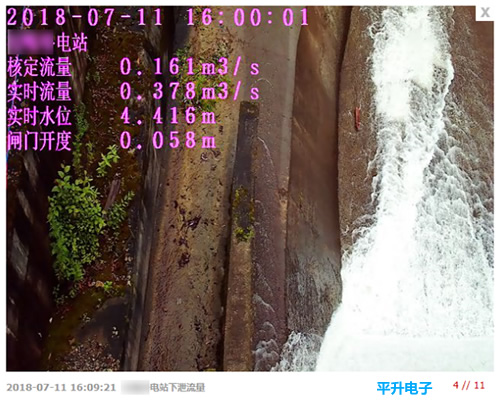 生态流量监测终端通过内部程序,为视频/图像叠加电站统计代码、电站名称、采样时间、实时流量数据、核定流量等信息,远传至监管中心。