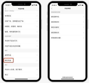 第二步:点击【侵犯权益】,选择您需要举报的侵权类型
