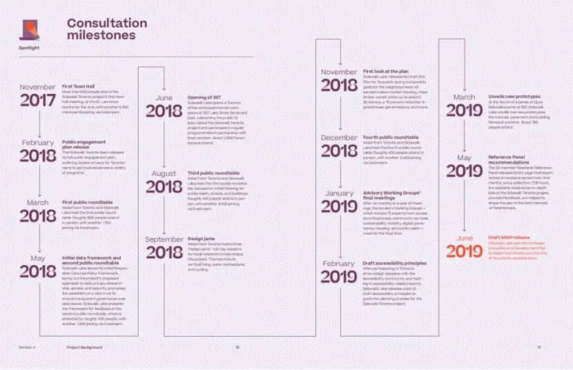 现场讲座、圆桌会议、邻里会议、36人讨论小组、临时活动和偶尔的原型演示与公众交流……这些都在试图摆平当地居民、多伦多滨水区政府、当地政界人士、联邦政府及其在旧金山的母公司(也就是Google母公司Alphabet)等利益相关方。