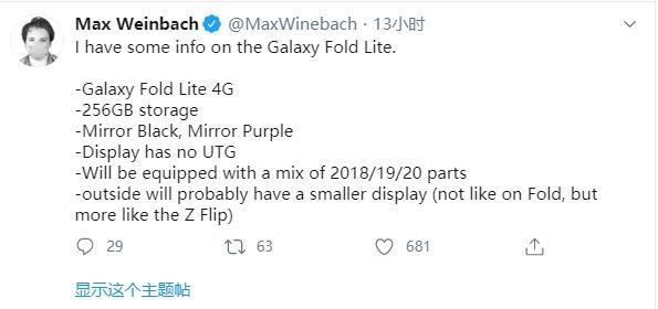 除此以外,这款Galaxy Fold Lite还将搭载256G的存储内存,并且酱有镜面黑以及镜面紫两种配色,在硬件配置上将会使用2018年至2920年各种已经成熟的技术,而在外观上可能会比Galaxy Fold更小一点,有点类似于Z Flip。而在价格方面据传闻可能会是1099美元,折合人民币7792元左右。