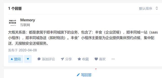 答:事实上,丰食是顺丰筹备已久的一项业务,今年二三月份就已经半公开的低调上线。