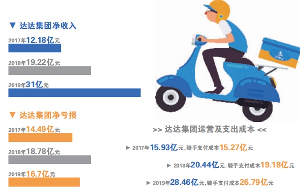 人力是配送环节中必不可少的资源,达达集团对此的支出在短期内仍会继续攀升。“我们预计随着业务的扩展,骑手成本和运营成本将会增加。”达达在招股书中说道。