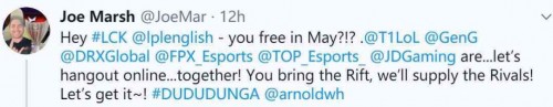 没成想Joe Marsh的提议还真的被韩国拳头给接纳了,lCK官方也用了一个月的时间,把“2020季中杯筹备出来”,那么到时候5月28日lCK和lpl的强强队将会一决胜负,争夺60万美金,折合人民币420万的奖金。