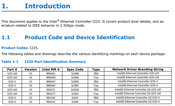 根据Intel的资料,I225 2.5G网卡分为I225-LM、I225-V两个系列,各自又都有两个步进版本。