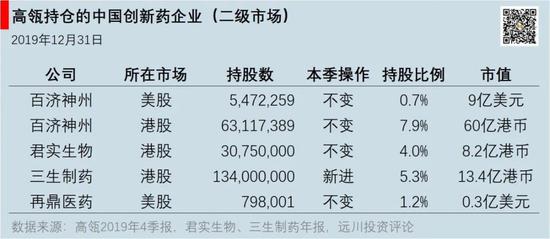 目前高瓴持有5只中国创新药股票,百济神州的美股和港股,君实生物,三生制药,以及再鼎医药,市值超过130亿元。
