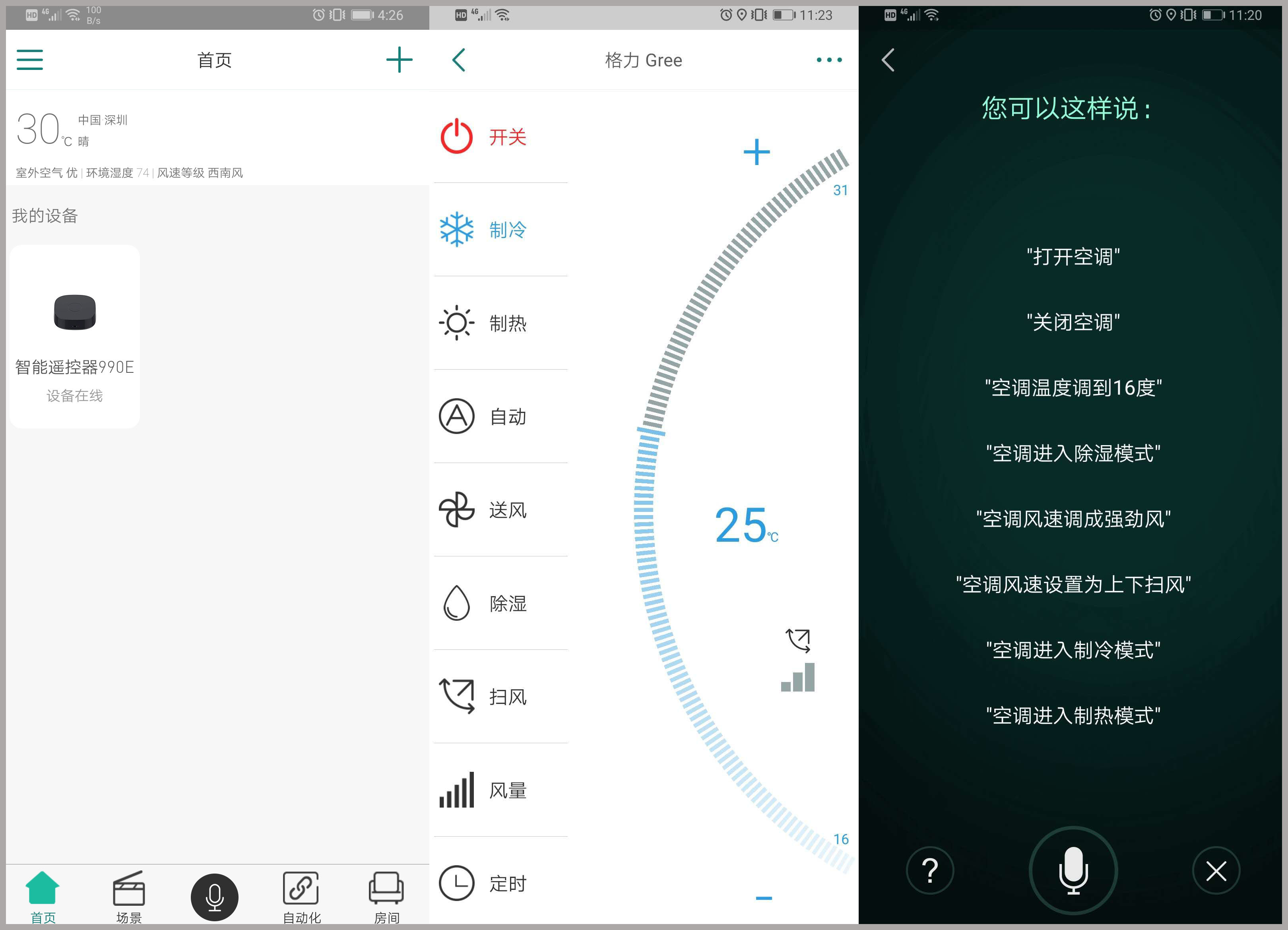 手动操控和语音操控APP页面截图