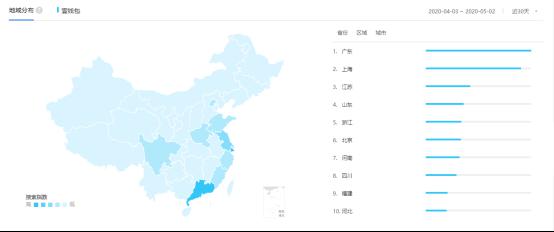 从百度指数分析可以看出,壹钱包用户的地域占比最高的是广东,其次是上海,前两名的地域占比相对于其他省份来说是遥遥领先。说明了在一定程度上,这两个省份的用户对于壹钱包的接受度较高。