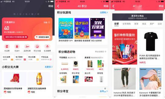 积分除了生活缴费外,壹钱包还推出了几个功能模块来丰富积分的应用场景,分别是小积分兑大牌,积分玩游戏,积分精选好物,积分商品(支持积分+现金支付的商品)。通过不同模块的商品推荐来吸引用户使用积分消费,同时也积分和支付在不同功能之间打通的一种体现。