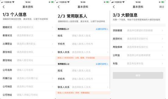 第三步是个人的大额信息,关于贷款额度,房贷,公积金等信息,更全面评估用户的信用情况。