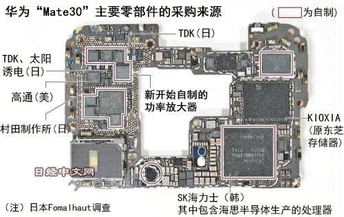 另外还发现,在此次的新型5G版手机上,难度较高的通信芯片也部分采用了由海思半导体研发的产品。在过去的4G手机上,这部分芯片原本采用的是美国大型通信芯片企业思佳讯(Skyworks Solutions)的产品,如今华为已经能独自进行研发。