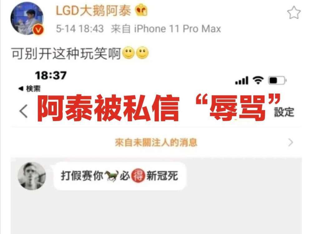 于是很多粉丝开始质疑比赛的公平性,甚至于私信“辱骂”LGD大鹅的名誉教练阿泰,对此阿泰也是感到很无语,直接回应“可别开这种玩笑啊”,职业选手是不可能拿这种事情来堵上自己的职业生涯的,KPL联盟对“假赛”的管控很严,一旦发现直接除名,以后都不可能再被允许打职业赛了。