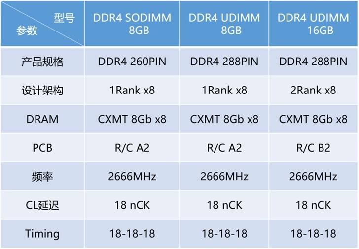 本次江波龙FORESEE采用的国产化内存颗粒都是长鑫存储10nm最新的8GB颗粒,三款存储的具体规格如下。