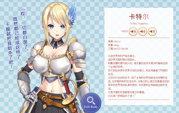 《KukkoroDays》的女主是一个叫做卡特尔的异世界女骑士,阴差阳错的来到了这里,玩家需要帮助她找到回去异世界的方法,以此为前提开启了和异世界女骑士的奇妙同居生活。