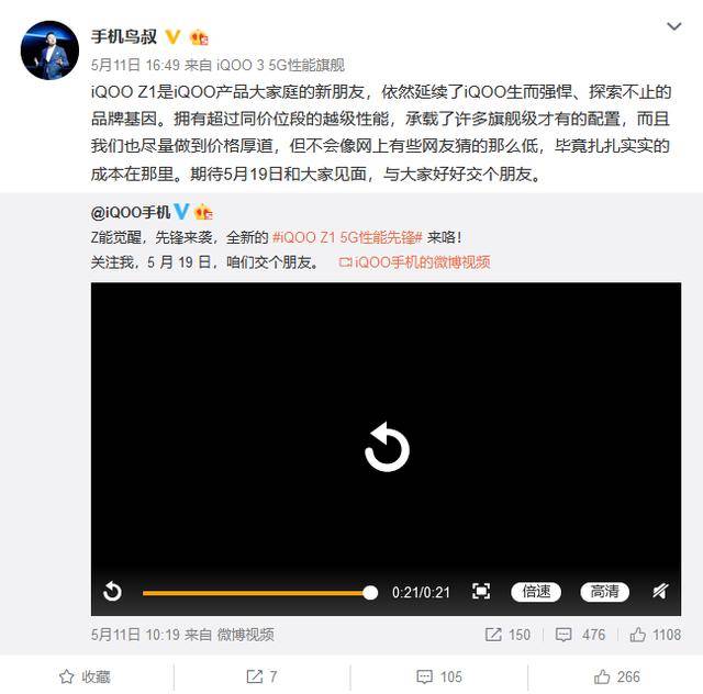 从目前已经曝光的信息来看,iQOO Z1将会是一款超越同价位机型的性能旗舰。iQOO产品线总经理@手机鸟叔 关于iQOO Z1,也是发表了自己的个人看法。他表示:“iQOO Z1是iQOO产品大家庭的新朋友,依然延续了iQOO生而强悍、探索不止的品牌基因。拥有超过同价位段的越级性能,承载了许多旗舰级才有的配置”。
