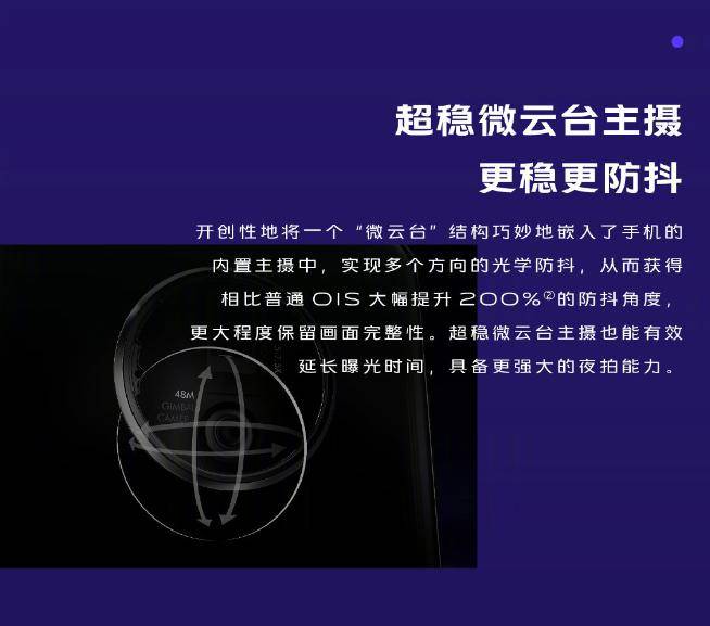 相比起普通的OIS光学防抖,“微云台”结构将带来200%的防抖角度提升。能更大程度保持画面的完整性,同时也能有效延长曝光时间,让夜拍能力也得到提升。