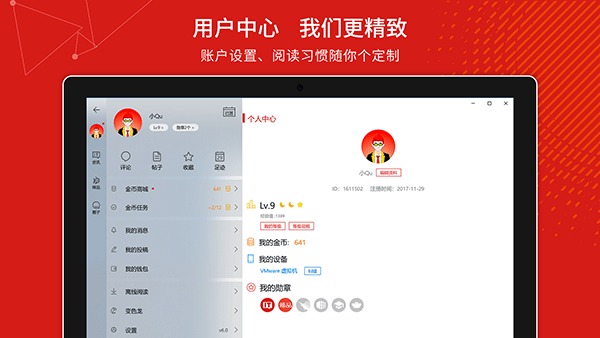 ▲ 个人中心,左侧设置导航全面毛玻璃透明