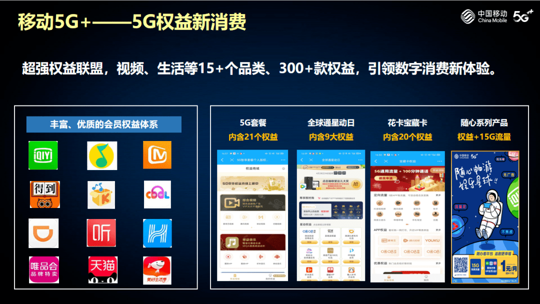 提供视频、音乐、阅读听书、生活购物等14个品类240款权益服务,并在打造5G精品网络的同时提供更具特色内容体验,满足客户多样化多层次的信息服务需求。