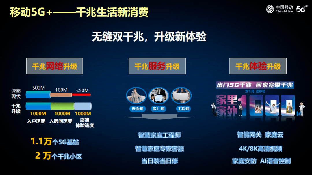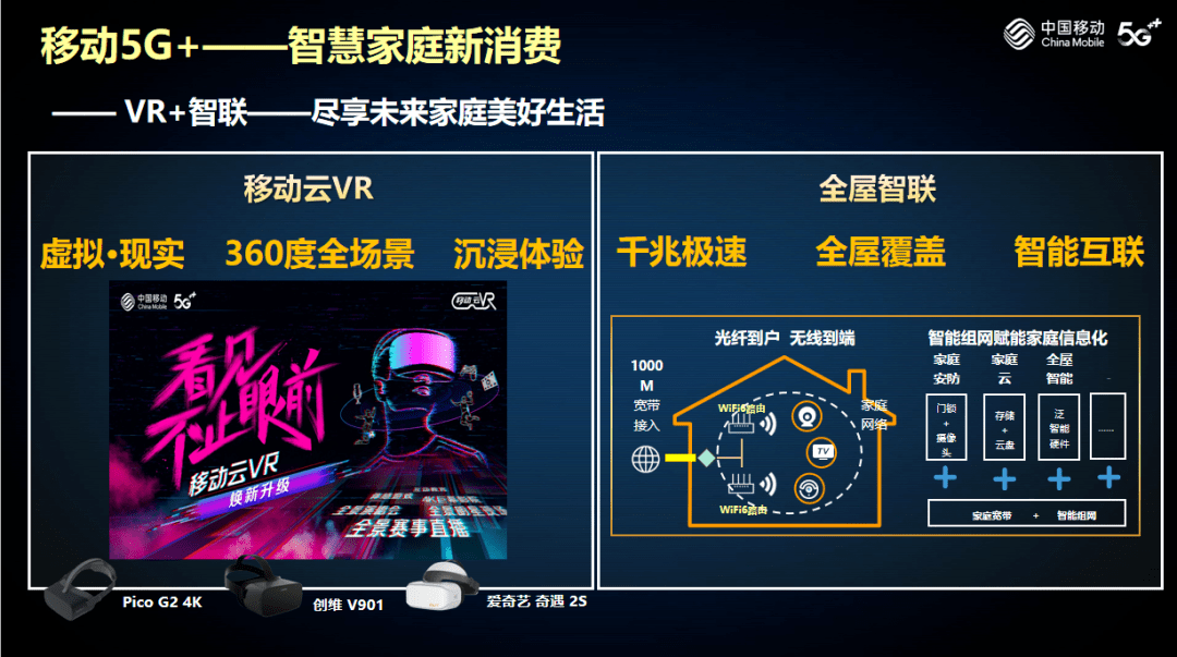 依托双千兆网络能力、云VR平台能力以及丰富的数字内容IP生态,全方位打造全场景沉浸体验,足不出户“浸”享生活。同时提供光纤到户后的全家智能组网服务,构筑高品质家庭网络,为用户提供全屋千兆宽带极速体验,赋能家庭信息化。