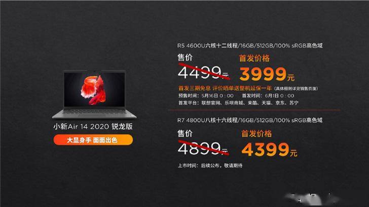原标题:小新 Air 14/15 2020锐龙版发布:R5 4600U+16GB内存,3999元