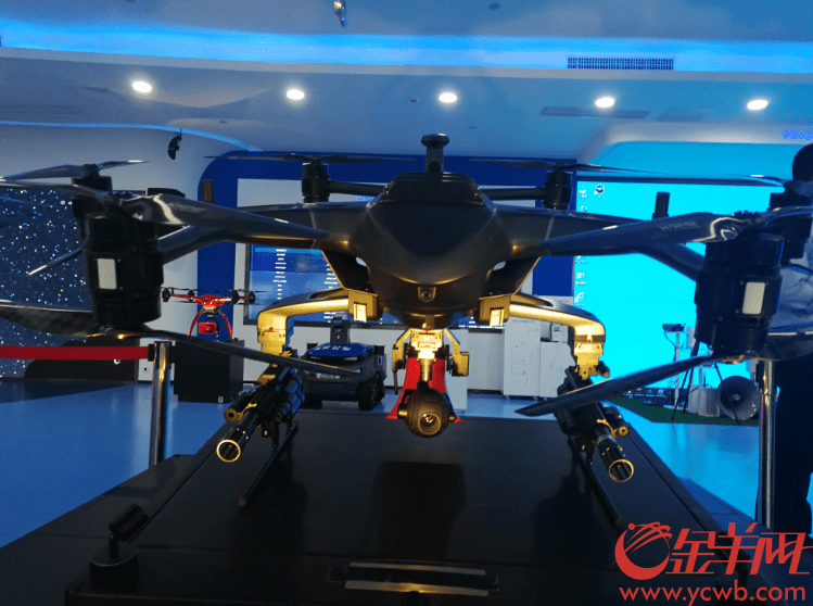 中国电信国家双创能力开放服务基地内展示的军用级多用途无人机