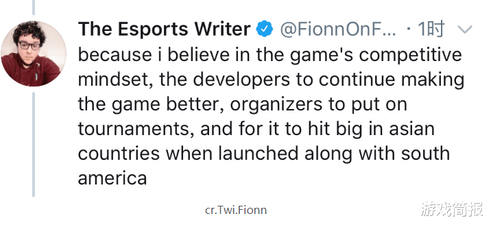 之后这位记者还解释了一番为什么会认为拳头新游Valorant会上榜的缘故,他表示:觉得开发商会持续更新并改善游戏内容,电竞组织也在积极的参加赛事,但这款游戏在亚洲地区发布后,一定会取得和北美一样的成功!