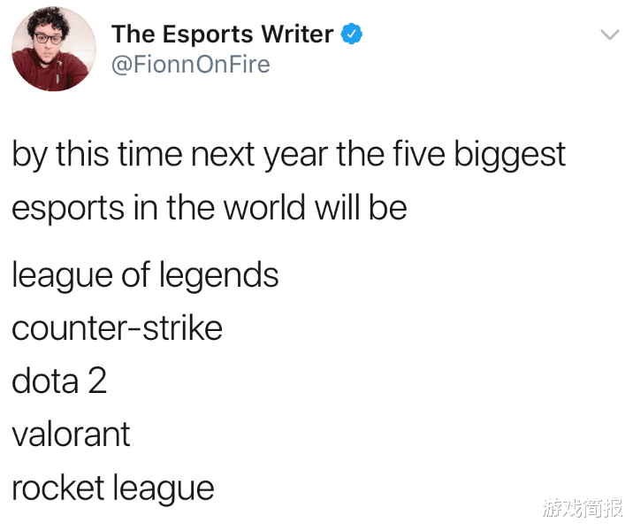 而在这两天ESPN的记者也是对未来一年全球电竞赛事做了一个预测,列举出了一份有关于明年电竞赛事排行榜,其中英雄联盟是稳居榜首位置,之后第二名是CS,第三则是Dota2,第四是拳头的新游戏Valorant,第五是火箭联盟。