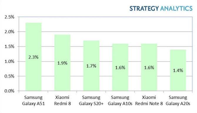 由于受到疫情影响,全球手机市场在第一季度都有所下滑,消费者队对于手机的价格也更加敏感。Strategy Analytics认为,如今消费者在选购手机时更看重价格了,这也是Galaxy A20s、Redmi 8等中低端手机频频上榜的原因。游戏网