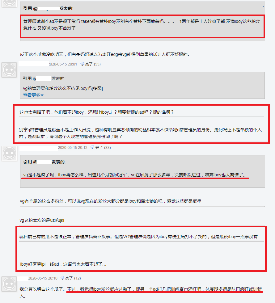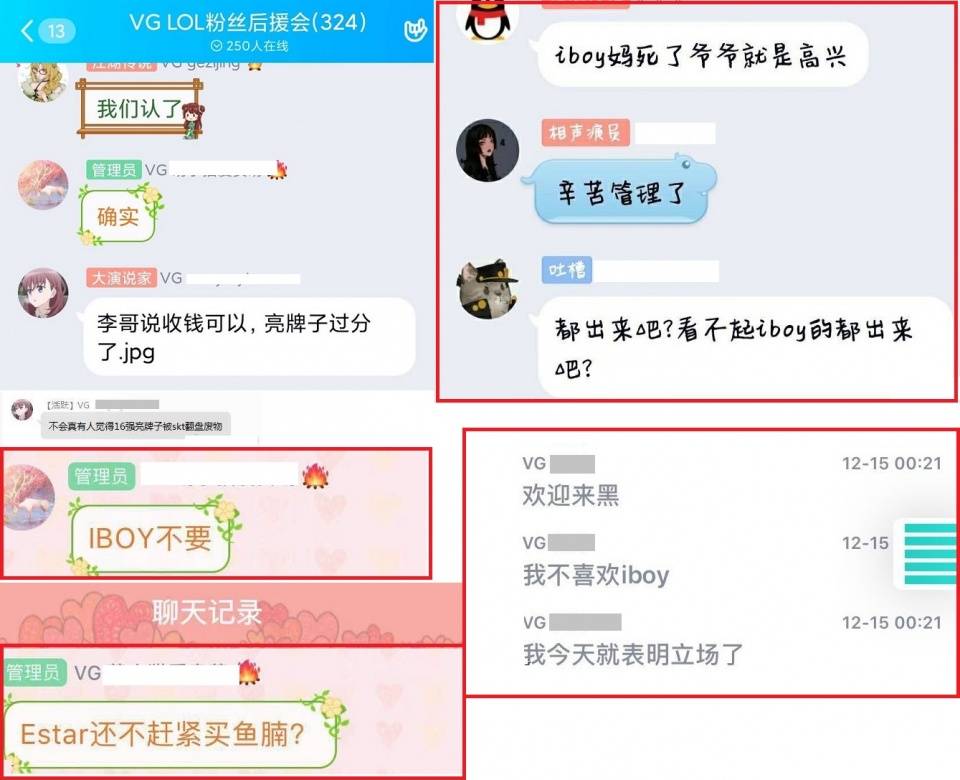 关于iBoy的节奏大致是,VG从二队提了个AD选手已经开始打训练赛了,貌似是给iBoy安排了个替补,但是夏季赛已经快要开始了,不让iBoy打训练赛磨合也引起了粉丝的不满。另外VG的粉丝群管理也遭到质疑,被指夹带私人感情引起粉丝内讧,甚至在群里公开排挤iBoy,甚至是嘲讽辱骂。