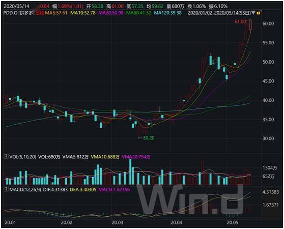 而另一边, 拼多多今年以来股价涨超60%,截至美东时间14日,市值为728.64亿美元。
