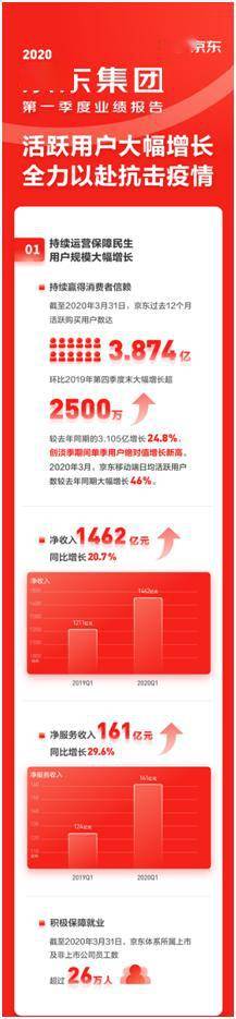 对于一季度的表现, 京东集团董事局主席兼首席执行官刘强东表示,“ 京东能够在新冠疫情爆发期间保持正常的高效运营,我们对此备感自豪, 京东的员工为公司在建设更高效和可持续的社会方面持续做出贡献而感到骄傲。第一季度强劲的用户增长体现出消费者越来越依靠 京东来满足生活中方方面面的需求,对 京东提供的丰富优质产品选择和一流服务的承诺充满信心。”
